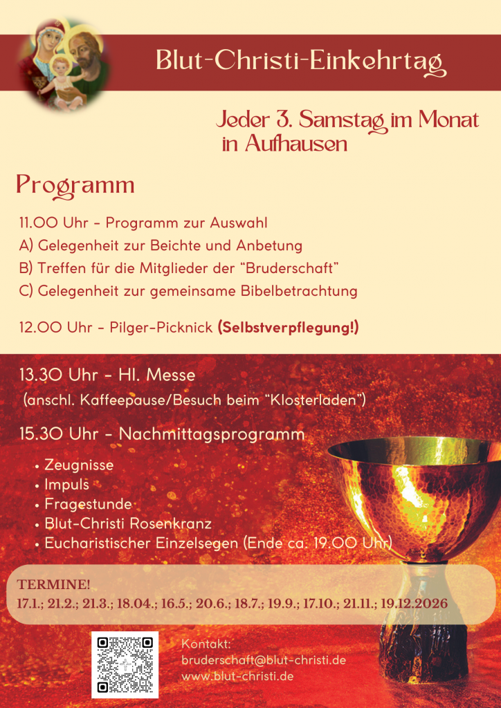 17. Jan. – Blut-Christi-Einkehrtag in Aufhausen