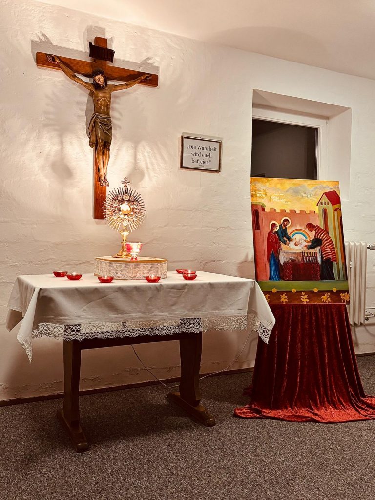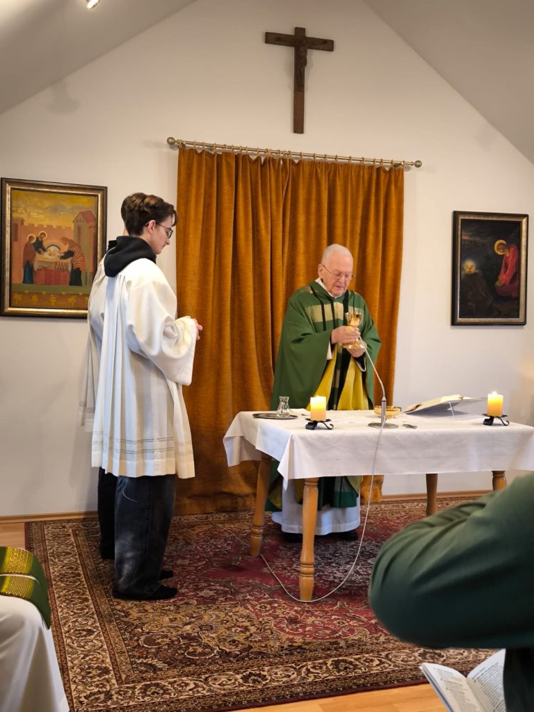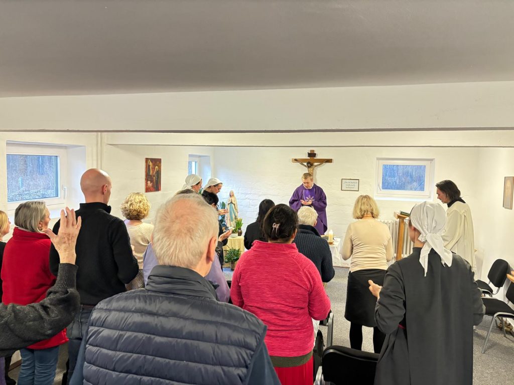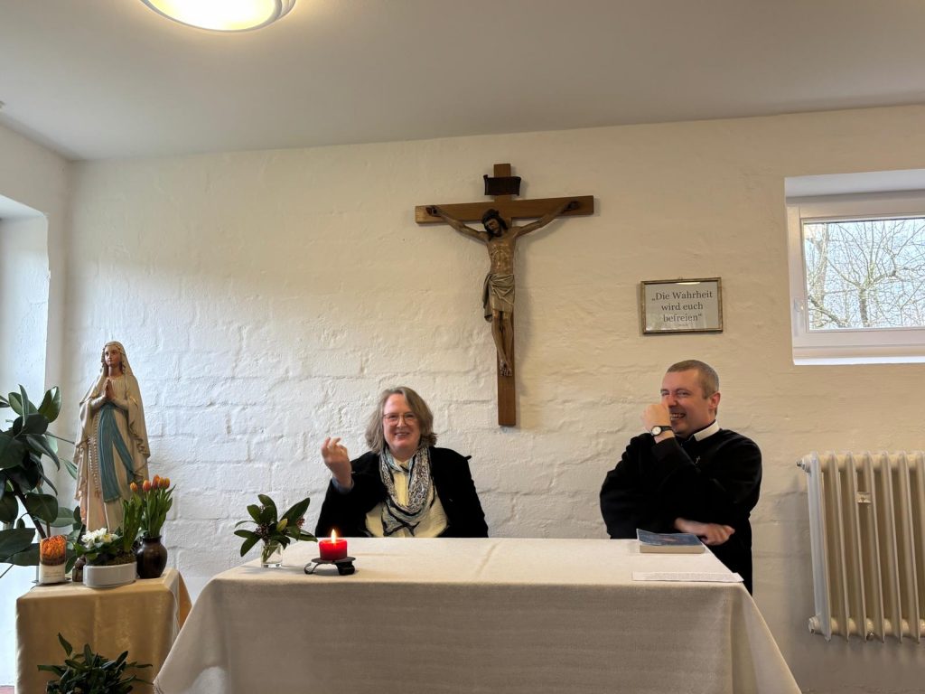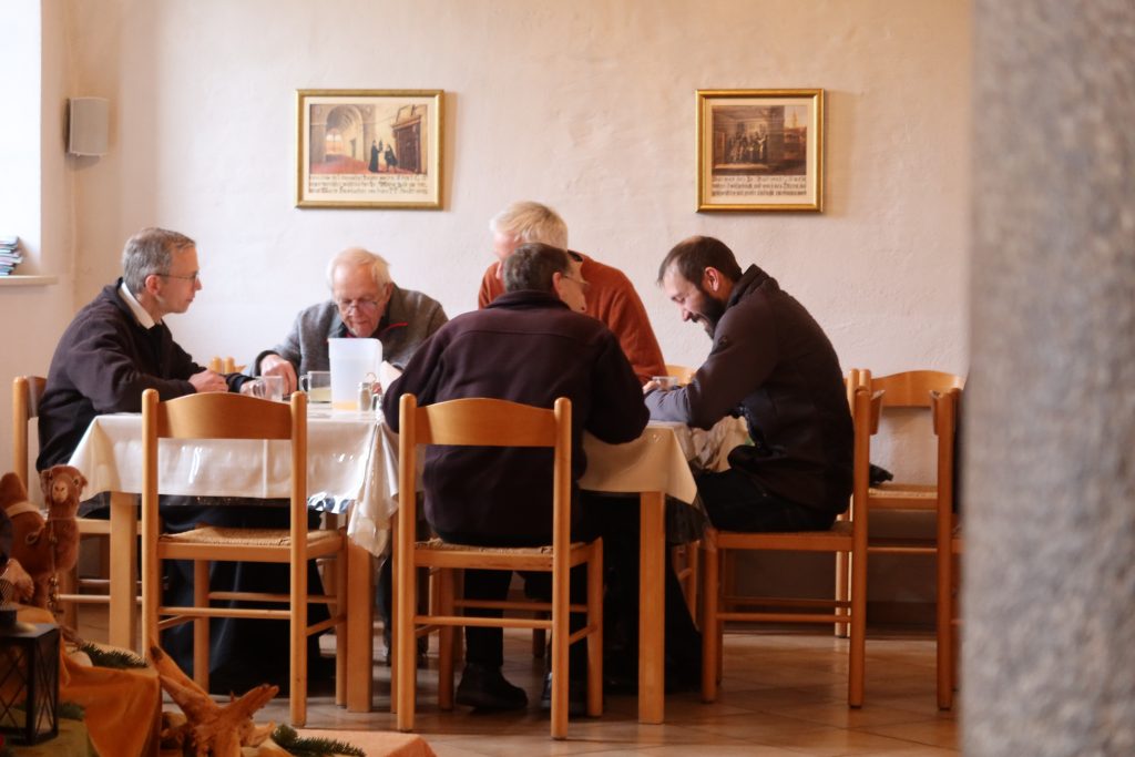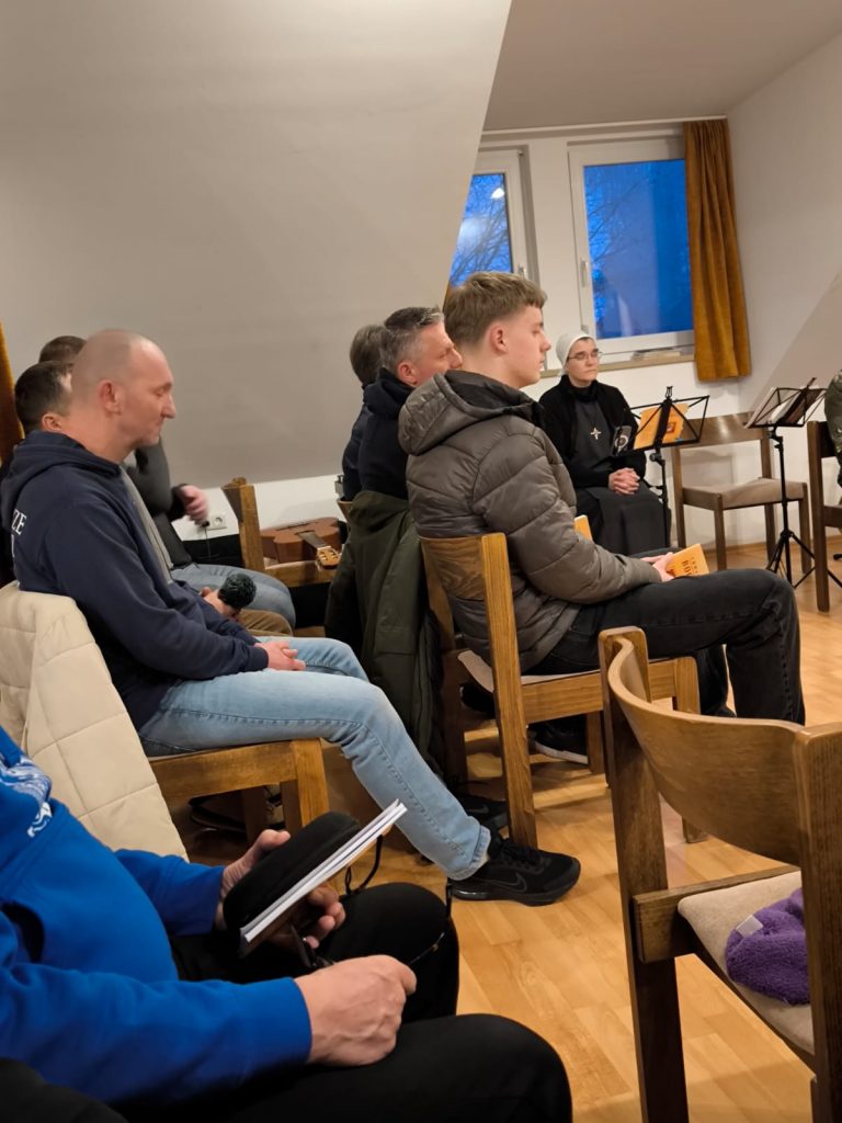 Wir freuen uns, dass wir gleichzeitig eine Gruppe der „Ritter Mariens“ bei uns aufnehmen durften. Die „Ritter Mariens“ sind eine katholische Gruppe für Männer, die sich besonders durch Gebet und karitative Werke für die Nächsten einsetzen – zur Ehre Mariens. Diese Gruppe hatte über das dritte Wochenende ein eigenes Exerzitienprogramm und bereicherte auch unseren Einkehrtag.