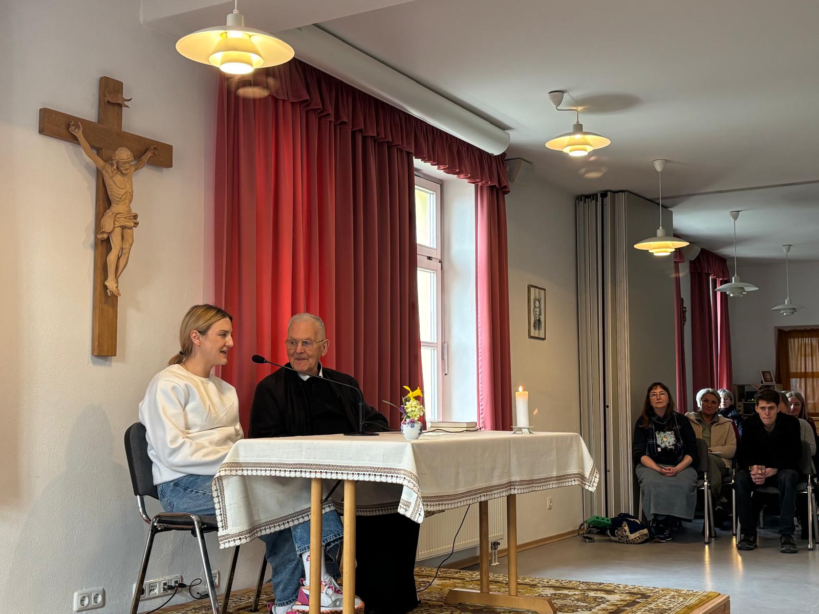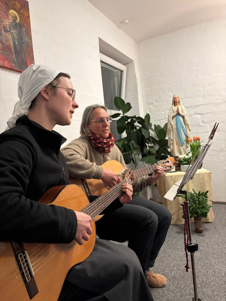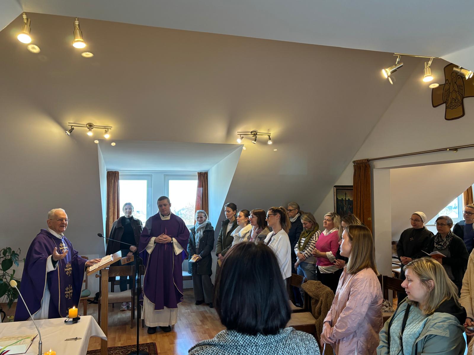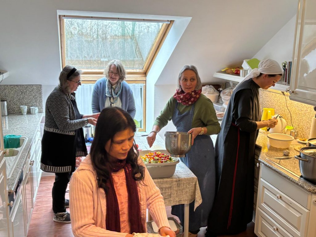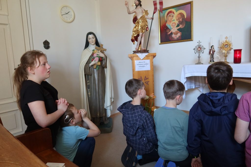 Wir freuen uns, dass wir gleichzeitig eine Gruppe der „Ritter Mariens“ bei uns aufnehmen durften. Die „Ritter Mariens“ sind eine katholische Gruppe für Männer, die sich besonders durch Gebet und karitative Werke für die Nächsten einsetzen – zur Ehre Mariens. Diese Gruppe hatte über das dritte Wochenende ein eigenes Exerzitienprogramm und bereicherte auch unseren Einkehrtag.