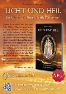 5) In unserer Familie, Nachbarschaft, Pfarrei… bemühen wir uns um die Ausbreitung unserer Bruderschaft. Wer aufgrund fehlender Gesundheit, fortgeschrittenen Alters oder anderer Probleme nicht mehr in der Lage ist, äußerlich viel zu tun, kann dennoch durch sein Gebet und das Aufopfern seines Leidens vielleicht sogar mehr bewirken als während der aktiven Zeit seines Lebens.