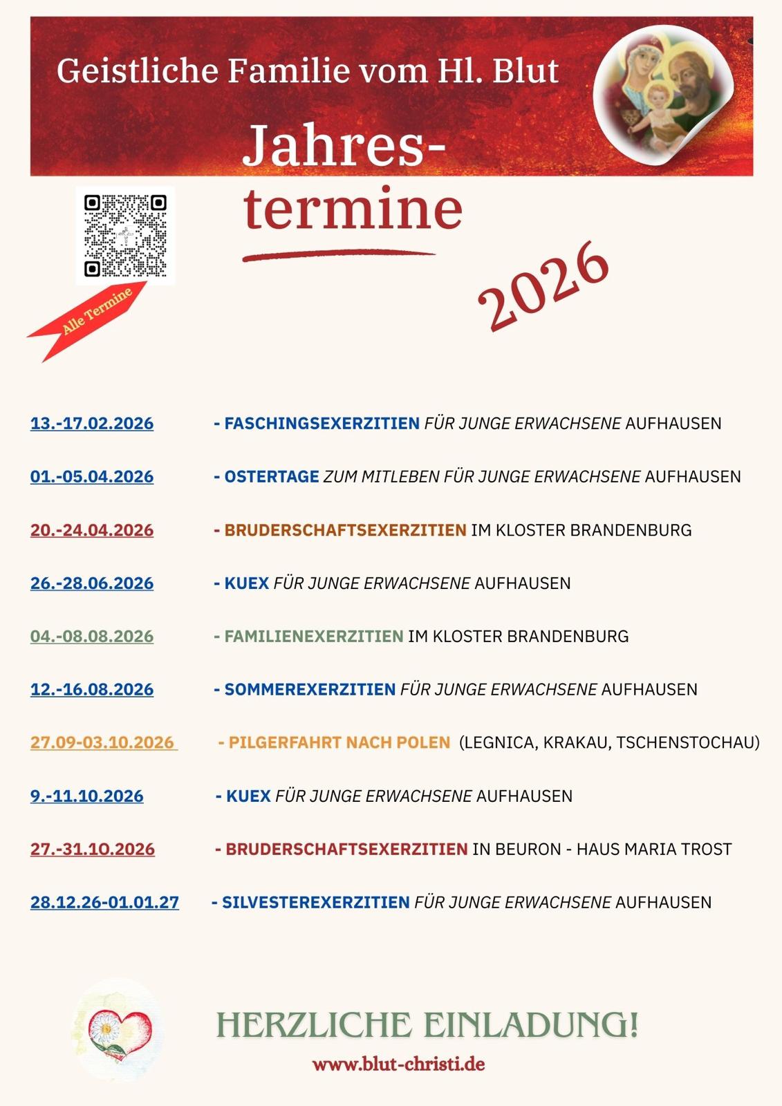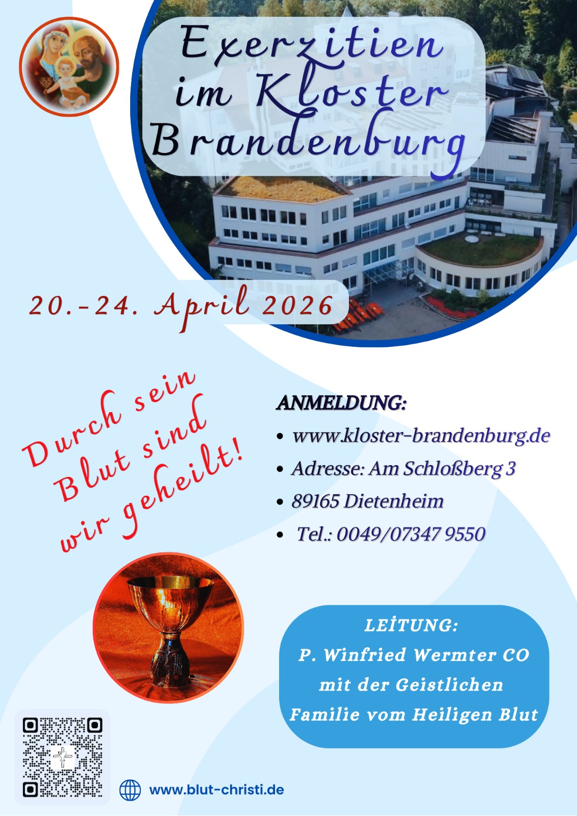 - 20.-24.4.26: Exerzitien für die Bruderschaft vom Heiligen Blut im Kloster Brandenburg – Flyer